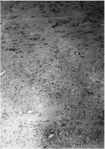 Histológicamente las células de este tumor no muestran rasgos de malignidad, aunque puede existir pleomorfismo celular como en algunos casos publicados8, 9. El empleo de tinciones específicas (tricrómico de Masson) revela la presencia de estrías longitudinales en el citoplasma de las células fusiformes y mediante la inmunohistoquímica se demuestra positividad para los marcadores del músculo liso (actina, desmina).