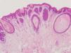 En el estudio histológico se observaban dilataciones infundibulares, sin pelo, como invaginaciones epidérmicas contiguas en la dermis, rellenas por queratina laminar (fig. 3).