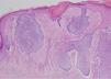 HistopatologíaLa lesión fue extirpada y el estudio histológico demostró nidos de células basaloides, extendiéndose desde la epidermis hacia la dermis reticular, con distribución de células en la periferia a modo de empalizada y hendiduras alrededor de los agregados tumorales ocasionadas por la retracción del estroma adyacente (fig. 3). Con tinción para CD31 y CD34 (marcadores endoteliales) se objetivaron numerosas luces vasculares elongadas y de calibre fino en la periferia del tumor, lo cual se correlacionaba con los hallazgos dermatoscópicos.