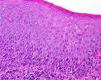 Recently, by analogy with the VIN categories, the grades PIN 2 and PIN 3 have been introduced to refer to penile intraepithelial neoplasm with moderate or severe dysplasia, respectively. Two forms of PIN have been described: differentiated PIN, equivalent to differentiated VIN and often associated with penile lichen sclerosus, and undifferentiated or Bowenoid PIN, equivalent to usual VIN and associated with HPV infection (Fig. 8). Renaud-Vilmer et al.31 performed a retrospective analysis of 53 patients with penile SCC with the aim of assessing the histologic abnormalities observed in lesions adjacent to the tumor, as well as the possible relation between these lesions and different types of SCC. HPV-associated SCCs were warty, basaloid, or mixed in nature, and accounted for approximately 45% (24 out of 53) of all penile SCCs in their series. They observed underlying Bowenoid PIN in all cases of these carcinomas. The etiopathogenic role of HPV in Bowenoid PIN was also demonstrated by Chaux et al.,32 who found that overexpression of the p16 geneINK4a—which is strongly associated with HPV infection—was positive in penile basaloid and warty SCCs (P<.0001) but not in SCCs associated with differentiated PIN and lichen sclerosus. The histologic subtypes of SCC not associated with HPV infection are the usual and verrucous forms (well-differentiated variant of SCC with no evidence of associated koilocytosis) and accounted for 55% of all cases (29 out of 53) in the study by Renaud-Vilmer et al.31 Underlying lichen sclerosus was detected in 93% of these carcinomas. Likewise, no association has been found between HPV infection and sarcomatoid SCC of the penis in studies published to date.33 Renaud-Vilmer et al.31 also observed that the presence of acanthosis and orthokeratotic hyperkeratosis, the so-called squamous cell hyperplasia, was frequently associated with differentiated PIN and lichen sclerosus. Similar findings were also reported by Van de Nieuwenhof et al.21 in their study of vulvar SCC, where squamous cell hyperplasia was more frequent in patients with lichen sclerosus that progressed to SCC. Lichen sclerosus is an HPV-independent etiopathogenic factor in some types of usual and verrucous penile SCC, with differentiated PIN and squamous cell hyperplasia being the histological variants associated with and implicated in carcinogenesis.
