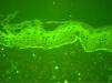 DIF is positive in 100% of cases and the findings manifest as linear IgA deposits in the basement membrane zone of normal and perilesional skin9 (Fig. 3). IgM and C3 deposits may be observed in some cases.10 Although the name linear IgA bullous dermatosis clearly comes from the linear IgA deposits observed in the basement membrane zone, it is still unclear whether a diagnosis can be established based on this finding alone. In fact, similar deposits have been reported in several cases of subepidermal blistering diseases other than LABD, such as bullous pemphigoid, mucous membrane pemphigoid, gestational pemphigoid, and bullous epidermolysis.14
