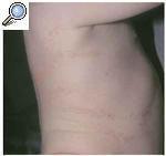 Fig. 1.--Lesiones papulares liquenoides siguiendo las líneas de Blaschko en cara lateral de tronco y extremidad superior.