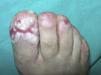 El LP erosivo plantar es una forma poco frecuente de LP que afecta sobre todo a personas de edad avanzada. Las lesiones se inician con la aparición de eritema y ampollas en los pies que evolucionan a erosiones y úlceras intensamente dolorosas e incapacitantes. Se localiza sobre todo en talones, pero puede afectar a la totalidad de la superficie plantar e incluso a la superficie dorsal de los dedos2. El cuadro completo se acompaña de la pérdida total de todas las uñas de los pies.