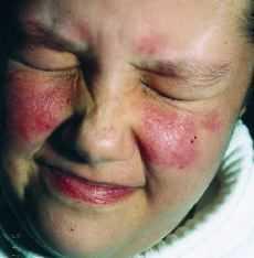 FIG. 2.--Caso 2: elementos eritematosos con discreta descamación en mejillas y regiones supraciliares.