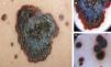 Describimos el caso de un varón de 41 años que acudió a nuestra consulta por la aparición súbita de múltiples lesiones pigmentadas (> 300) en los últimos dos meses (fig. 1). En la exploración física destacó la presencia en la escápula izquierda de una lesión pigmentada, irregular y heterocroma, de 3cm de diámetro y 2 años de evolución, a la cual el paciente no había dado importancia. La dermatoscopia mostró una lesión de patrón multicomponente, glóbulos irregulares en la periferia y velo azul-blanquecino central (fig. 2). No se objetivaron adenopatías palpables locorregionales.