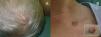 A. Lesiones tumorales eritemato-violáceas de límites bien definidos en la región parieto-temporal derecha. B. Lesión de similares características en la región supraclavicular izquierda. C. Imagen ampliada de la figura B que permite apreciar una pequeña erosión central y el importante componente vascular de la lesión.