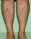 Presentamos el caso de un varón de 55 años de edad, sin antecedentes personales de interés ni toma de medicación habitual que acudió a la consulta presentando lesiones asintomáticas en las piernas, de aparición progresiva, desde hacía un año. En la exploración se apreciaron pápulas eritematosas no foliculares de tamaño comprendido entre 1 y 2mm, distribuidas de forma simétrica en la superficie anterior e interna de las piernas (fig. 1), algunas cubiertas de una fina escama blanquecina (fig. 2). Se trataba de lesiones aisladas que no confluían formando placas.