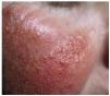 FIG. 2.--Caso 2. Lesiones de milium coloide sobre base eritematosa en la mejilla.