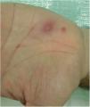 In conclusion, we report the second case of MC on the palm of the hand to date. This entity should be considered when we find papular lesions on the palms or soles, especially in patients with a personal or family history of risk, in order to perform a correct diagnosis.