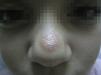 Presentamos una paciente de 8 años de edad, sin antecedentes médicos de interés, remitida por una lesión localizada en el dorso nasal de dos meses de evolución, que había recibido, sin éxito, tratamiento con una crema de hidrocortisona al 1% pautada por su médico de Atención Primaria.