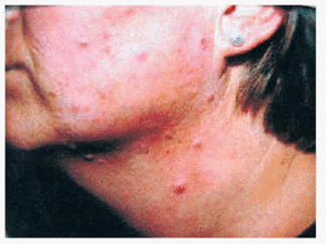 En 1998, Wittenberg publica cuatro casos de mucinosis folicular primaria con lesiones faciales similares a un acné excoriata, a la que denomina mucinosis folicular acneiforme. Esta forma de mucinosis folicular se caracteriza por su curso crónico persistente y su benignidad28.