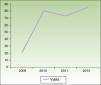 ResultsFrom 2009 to 2012, the unit received 184 patients (89 men and 95 women) who generated 259 visits. All the patients seen under the protocol were from the rheumatology and dermatology departments. A mean of 8 (2-14) visits per session was recorded. First visits accounted for 71% of the total; consecutive visits accounted for 21%, of which 5% were consecutive. Nonattendance at the scheduled visit was 8%. The number of visits increased significantly between 2009 and 2010 before leveling off at around 80 visits per year (Fig. 1). Although the number of consecutive visits increased over time, the ratio of first visits to consecutive visits settled at 7:3 (Fig. 2).