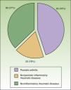 The presenting complaint was psoriasis of the skin and nails in 72% of cases (132/184). A definitive diagnosis of PsA was made in 45% of patients (83/184) and the disease was considered de novo in 44 cases (24%). In 18% of cases the diagnosis was nonpsoriatic inflammatory rheumatic disease (gout, connective tissue disease, and rheumatoid arthritis); in 37% the diagnosis was noninflammatory disease of the locomotor apparatus (arthrosis and nonspecific pain of the locomotor apparatus) (Fig. 3).