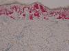 Presentamos el caso de un paciente caucásico de 42 años de edad, con un melanoma estadio iv, diagnosticado hacía 6 años de melanoma en el brazo derecho con ganglio centinela positivo, al que se le realizó linfadenectomía axilar derecha y tratamiento posterior con interferón. En controles posteriores, 6 años después, se objetivaron 2 nódulos pulmonares y lesiones óseas metastásicas en C5, D11 y ambas palas ilíacas y sacro, por lo que al detectarse la mutación BRAF V600E se inició tratamiento con vemurafenib 960mg cada 12h. Dos meses después de iniciar el tratamiento se objetivó una lesión papular en el muslo izquierdo, que no estaba presente en la revisión anterior un mes antes, de 10×8mm, cupuliforme, del color de la piel, asintomática, que había ido creciendo (fig. 1). Se le realizó una biopsia-extirpación de la lesión con el diagnóstico de sospecha de queratosis actínica hipertrófica, siendo la lesión extirpada en su totalidad. La evaluación histológica mostró una proliferación de melanocitos en la epidermis y en la dermis papilar, con discreta atipia arquitectural (fig. 2). Los melanocitos se agrupaban formando nidos en la epidermis y en la dermis papilar, con discreto pleomorfismo nuclear. Se solicitó estudio inmunohistoquímico con Melan-A y HMB-45 que mostró una proliferación de melanocitos en la capa basal de la epidermis con focos de melanocitos en capas más altas de la epidermis (fig. 3). Todos estos hallazgos son compatibles con un nevus atípico.