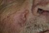 On this occasion he was seen in outpatients for a pruritic plaque that had arisen in right nasolabial fold 4 months earlier and showed rapid growth.