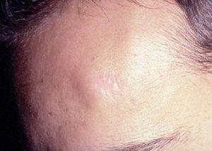Fig. 1.--Nódulo asintomático en la frente.