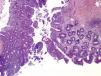 HistopatologíaEl estudio histológico mostró una lesión sobreelevada de morfología poliploide (fig. 2). A mayor aumento se observaba un revestimiento focal por un epitelio poliestratificado queratinizado de tipo epidérmico, en transición con mucosa gastrointestinal (fig. 3), con erosiones superficiales y un moderado infiltrado inflamatorio en lámina propia.