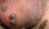 Fig. 2.—Nódulos violáceos en escroto.