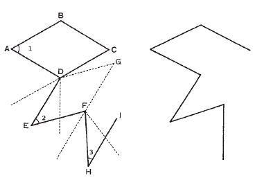 Fig. 1. Dermatología quirúrgica geométrica. Diseño del colgajo bilobulado. 2 = 3/4 de 1; 3 = 3/4 de 2 = 9/16 de 1.