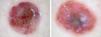 En la imagen dermatoscópica de ambas lesiones podemos apreciar básicamente un patrón vascular polimorfo-atípico y restos de pigmento.
