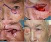 | Subtotal or full-thickness defects of the upper eyelid | Full-thickness rotation flaps from the lower eyelid with reconstruction of the lower eyelid using a rotation flap of skin from the cheek (Mustardé type) |