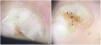 Despite being a benign tumor, a case of an onychopapilloma with malignant histopathology has recently been reported associated with symptoms such as pain and bleeding.4 Although onychopapilloma can eventually cause symptoms, when these are present and associated with atypical clinical presentations, they could be warning signs, and pathological examination should be performed to rule out malignancy, such as in case #1.