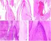 On microscopic examination of both cases, a hyperkeratotic and parakeratotic stratum corneum, associated with Malpighi stratum papillomatosis and koilocytic changes was seen, leading to a diagnosis of onychopapilloma (Figs. 3). The finding of an excessively cellular chorion in case #1 prompted us to perform additional immunohistochemical studies that tested negative for S100, CD34, CD99, smooth muscle actin, desmin, h-caldesmon, EMA and XIIIA factor. This cellular chorion strongly tested positive for trichrome staining, indicating thick collagen bundles, Ki-67 cell proliferation index <1%. Based on the clinical and histopathological findings, the diagnosis of onychopapilloma was eventually confirmed (Fig. 3).