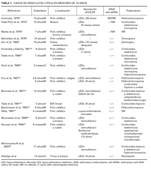 TABLA 1. CASOS DE PANICULITIS LÚPICA EN MENORES DE 14 AÑOS