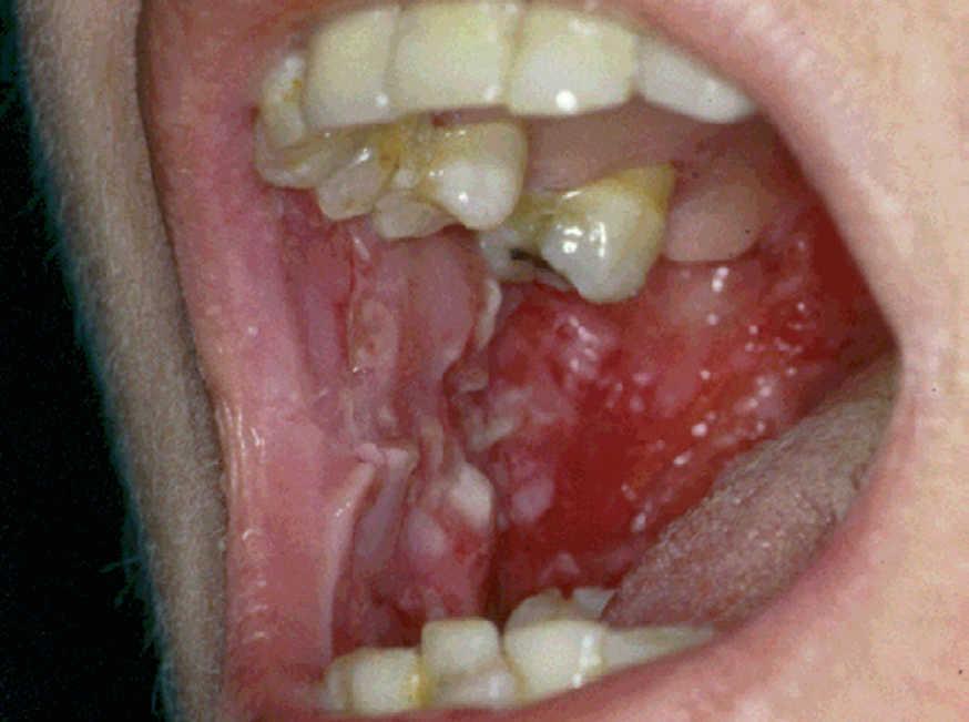 Fig. 6.--Erosiones en mucosa yugal en pénfigo vulgar.