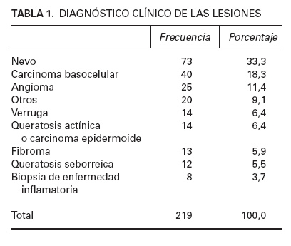 TABLA 1. DIAGNÓSTICO CLÍNICO DE LAS LESIONES