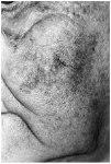 FIG. 1.--Placa de morfología arciforme formada por la confluencia de múltiples nódulos en la mejilla derecha.