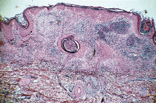 En la PG no existen datos de laboratorio específicos y la histología también es inespecífica. La célula fundamental en el infiltrado inflamatorio es el neutrófilo. En general la epidermis y la dermis superficial suelen estar ulceradas y necróticas y existe un denso infiltrado abcesiforme de neutrófilos que suele extenderse hasta hipodermis; la epidermis del borde de la úlcera se muestra hiperplásica, lo que es más evidente en lesiones evolucionadas y el infiltrado será tanto más crónico, linfocitario, cuanto más nos alejemos del borde activo de la lesión. Su y cols. (8) reconocen tres patrones histológicos dependiendo del lugar de la biopsia.