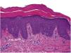 Un niño de 9 meses presentaba una erupción cutánea localizada en el abdomen y en las extremidades, que se había diseminado rápidamente en los últimos 2 meses, sin otros síntomas asociados. Tenía una historia de múltiples pielectasias tratadas con antibióticos profilácticos (cefadroxilo) hasta los 5 meses de edad. Antes del desarrollo de las lesiones cutáneas, el paciente tuvo múltiples infecciones virales y bacterianas del tracto respiratorio superior que requirieron antibióticos y corticosteroides. En el examen físico, se identificaron unas pápulas y placas de color rosa salmón, confluentes en el tronco y las extremidades (fig. 1a), con islotes de piel sana en ambas piernas. Las biopsias de las lesiones mostraron la presencia de una acantosis, con hipergranulosis, ortoqueratosis y paraqueratosis, y un infiltrado superficial leve, consistente con pitiriasis rubra pilaris (PRP) (fig. 2). El tratamiento tópico se indicó durante un mes, con acetónido de triamcinolona en crema al 0,05%, con una resolución completa de las lesiones (fig. 1b). Debido a la historia clínica de infecciones respiratorias recientes, la resolución temprana de las lesiones cutáneas y los hallazgos histológicos, se planteó el diagnóstico de PRP postinfecciosa aguda.
