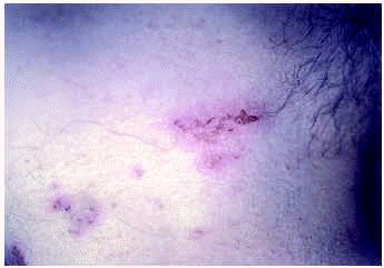 Fig. 1.--Placas eritematosas erosionadas localizadas en las regiones axilares.