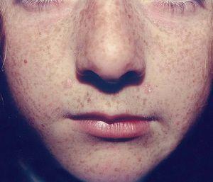 Una niña de 12 años, sin antecedentes de interés, consultó por lesiones levemente dolorosas al roce en surcos nasogenianos derecho e izquierdo, de un año y 2 meses de evolución, respectivamente. De manera simultánea, el padre de la paciente fue atendido por lesiones similares en frente y dorso nasal, presentes desde su juventud.