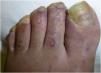 Dermoscopy revealed the presence of several, well-demarcated, depressed, porcelain-white 3–6mm plaques with a peripheral erythematous–violaceous halo on the dorsum of the patient's feet and toes (Figs. 1 and 2).