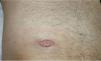 The patient was a 54-year-old man without no remarkable past history referred to our department with recurrent outbreaks of small pruritic lesions on the trunk and extremities and a painful ulcer that had appeared spontaneously 3 weeks earlier. Physical examination showed an ulcer measuring 3×1.5cm with an indurated violaceous border, a necrotic base, and a fibropurulent exudate on the right edge (Fig. 1).The only other remarkable finding was 2 small isolated pustular lesions on the right thigh and right chest.