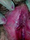 Se trataba de 3 pacientes de 66, 58 y 82 años, con lesiones vulvares de hasta 5cm de diámetro (fig. 1). En las 3 se llevaron a cabo múltiples biopsias (fig. 2), demostrándose una afectación exclusivamente intraepidérmica y un exhaustivo estudio de extensión, en el que se descartó la posibilidad de una neoplasia subyacente. Se planteó tratamiento tópico con imiquimod con objeto de evitar el riesgo quirúrgico que ocasionaría el abordaje tradicional de este tumor, valorando las comorbilidades presentes en nuestras pacientes. La pauta que empleamos fue de imiquimod al 5% en crema aplicada a diario durante 3 semanas, seguida de su uso en días alternos hasta completar un total de 16 semanas. Las 3 pacientes finalizaron el tratamiento, aunque presentaron episodios de inflamación y dolor moderados. Se realizaron biopsias de control a los 6 meses y al año de seguimiento. Durante el primer año tras la aplicación de la terapia, las 3 pacientes fueron controladas clínicamente cada 3 meses, para posteriormente ser evaluadas semestralmente. En el momento actual, las pacientes han completado un periodo de seguimiento de 53 meses y se mantienen en remisión completa (fig. 3).Recientemente Green et al.3 han revisado los casos publicados en la literatura acerca del uso de imiquimod en la EPEM, encontrando remisión completa de la enfermedad en 21 de los 27 casos publicados (78%). Los factores que contribuyen al éxito o al fracaso terapéutico del imiquimod en esta neoplasia no están claramente establecidos. La extensión de la lesión, el grosor variable de la misma en las diferentes áreas o la afectación anexial extensa son algunos de los factores que podrían explicar la variabilidad en la respuesta terapéutica.
