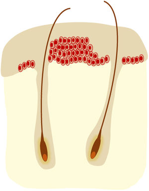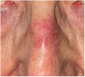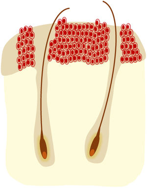 | Eritema y sensación de tacto rasposo | Discreta hiperqueratosis sobre base eritematosa | Marcada hiperqueratosis sobre base eritematosa no infiltrada |