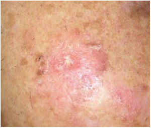 DiagnósticoDiagnóstico clínicoLas QA suelen presentarse cómo máculas, pápulas o placas no infiltradas, eritematosas o del color de la piel, con tacto rasposo y un tamaño de pocos mm a 2-3cm de diámetro12. Las localizaciones más frecuentes son las áreas expuestas crónicamente al sol: cara, orejas, cuero cabelludo (en personas con alopecia), escote y dorso de manos. Dependiendo de la intensidad o el predominio de ciertos signos, se pueden diferenciar algunas variantes clínicas como la forma hipertrófica o la pigmentada13,14.