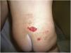 At the clinical examination he had a 4cm ulcerated hemangioma in the intergluteal fold (fig. 4). The lesion did not deviate the middle line. The mother referred that the lesion ulcerated 2 days before the dermatological revision. He had no other clinical sign or symptom. After a normal physical exam he started treatment with propranolol with good tolerance.