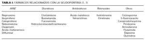 Presentamos, en resumen, el primer caso de seudoporfiria inducida por diclofenaco; un AINE que ha sido considerado hasta ahora como alternativa segura en casos de seudoporfiria producida por otros AINE(15); sin embargo, el caso fue notificado al Centro de Farmacovigilancia de Aragón que aplicando el algoritmo de causalidad del Sistema Español de Farmacovigilancia consideró dicha reacción adversa como definida.