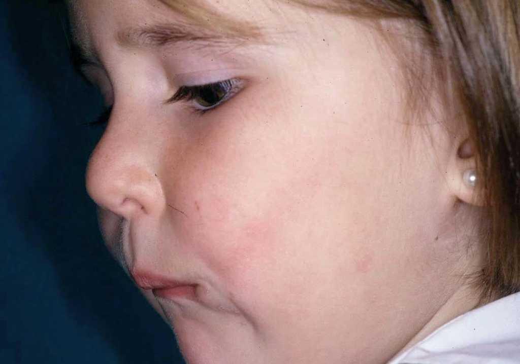 Figura 1. Leve mácula eritematosa, con distribución lineal en la mejilla izquierda, apareciendo a los pocos segundos de la ingesta de un caramelo.