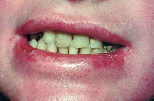 Fig. 2.--Deterioro moderado en piezas dentarias y rágades.