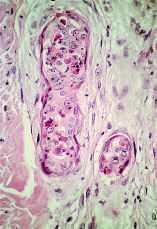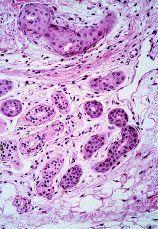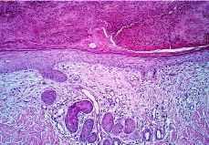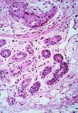 FIG. 8.--Conductos ecrinos normales y conductos con siringometaplasia escamosa ecrina inmadura.