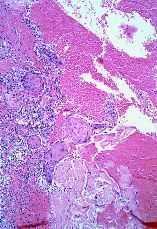 FIG. 6.--Conductos con SEE localizados en tejido de granulación justamente en la incisión de la cirugía previa.