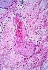 FIG. 9.--Conducto ecrino con siringometaplasia escamosa ecrinamadura (cornificación intraductal) y queratogranuloma.