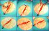 Técnica quirúrgicaDespués de la extirpación del tumor, y de acuerdo con los principios generales de la Dermatología Quirúrgica, iniciamos la sutura del defecto resultante. Primero suturamos plano profundo con sutura absorbible, entrelazada y multifilamento de ácido poliglicólico (Vicryl® de Ethicon) de 000/0000. Seguidamente iniciamos la sutura oblicua subcutánea (fig. 2). Empezamos la sutura en el punto medio de uno de los bordes de la herida (fig. 2a). La aguja curva la insertamos en la dermis media-profunda y siguiendo un movimiento curvo vamos a exteriorizarla lo más cerca posible del extremo de la herida (fig. 2b). Desde este punto (fig. 2c) pasamos al borde opuesto desde donde iniciamos una sutura subcutánea normal (fig. 2d) que continuamos hasta alcanzar el extremo opuesto de la herida (fig. 2e). Desde el extremo más distal del labio de la herida contrario al de inicio de la sutura, introducimos la aguja para salir justo enfrente del punto de entrada y anudamos con el hilo opuesto para aproximar ambos bordes (fig. 2f) de forma que cuando se produzca tensión en los bordes de la herida el «fuelle» que forma la sutura aproxima aún más los bordes evitando la dehiscencia.