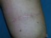 Para evitar la dehiscencia de la cicatriz a largo plazo usamos un material de sutura no reabsorbible, bien tolerado y que no se degrade con el paso del tiempo lo que nos aseguraría controlar las fuerzas de tensión y evitar, a corto plazo, la dehiscencia de la herida y, a la larga, una cicatriz imperceptible. Para que no se noten los orificios de entrada y salida del hilo de sutura decidimos hacer la sutura oblicua subcutánea en todo su trayecto, enterrándola completamente.