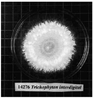 Fig. 2.--Colonias blancas pulverulentas típicas de T. mentagrophytes var interdigitale.